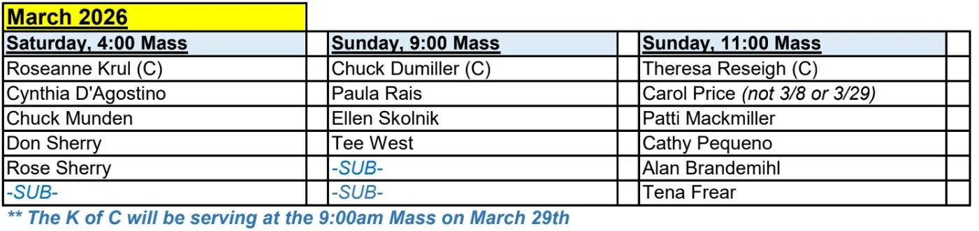 If you are interested in becoming an Extraordinary Minister of Holy Communion please contact Char Curtis.