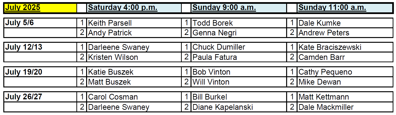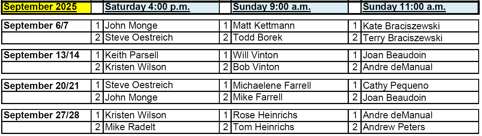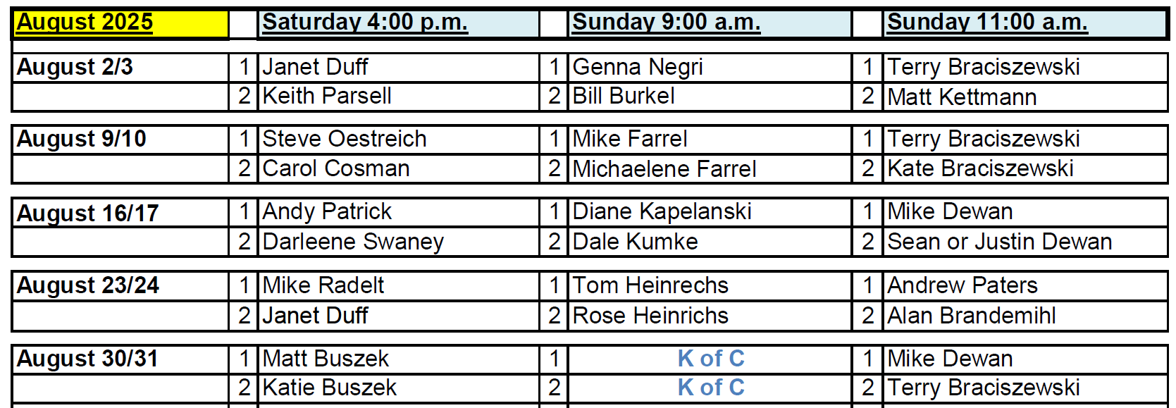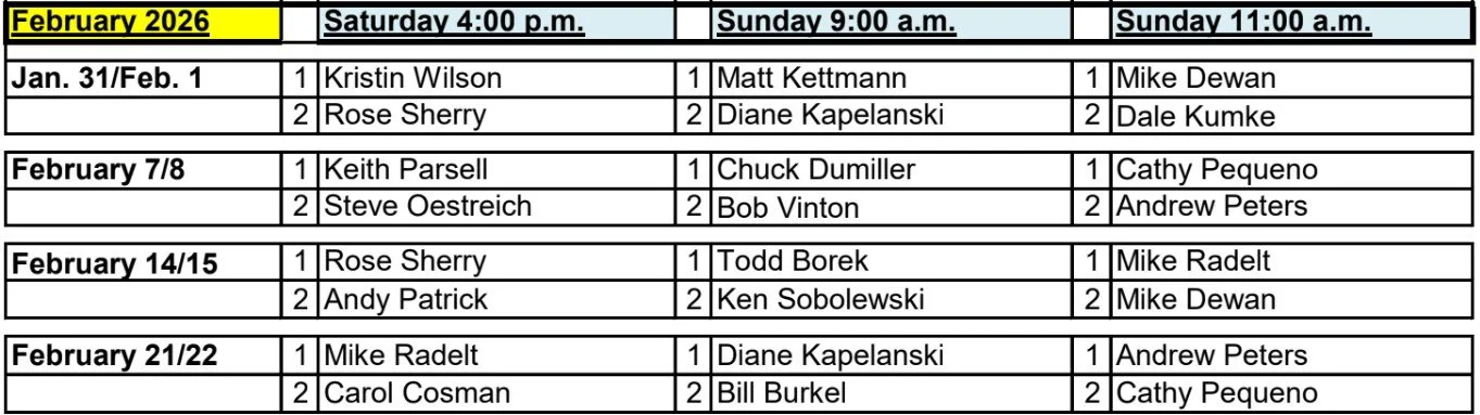 Lector ScheduleIf you are interested in becoming a Lector, please contact Char Curtis.Charlette Curtis, Coordinator 248.437.3676